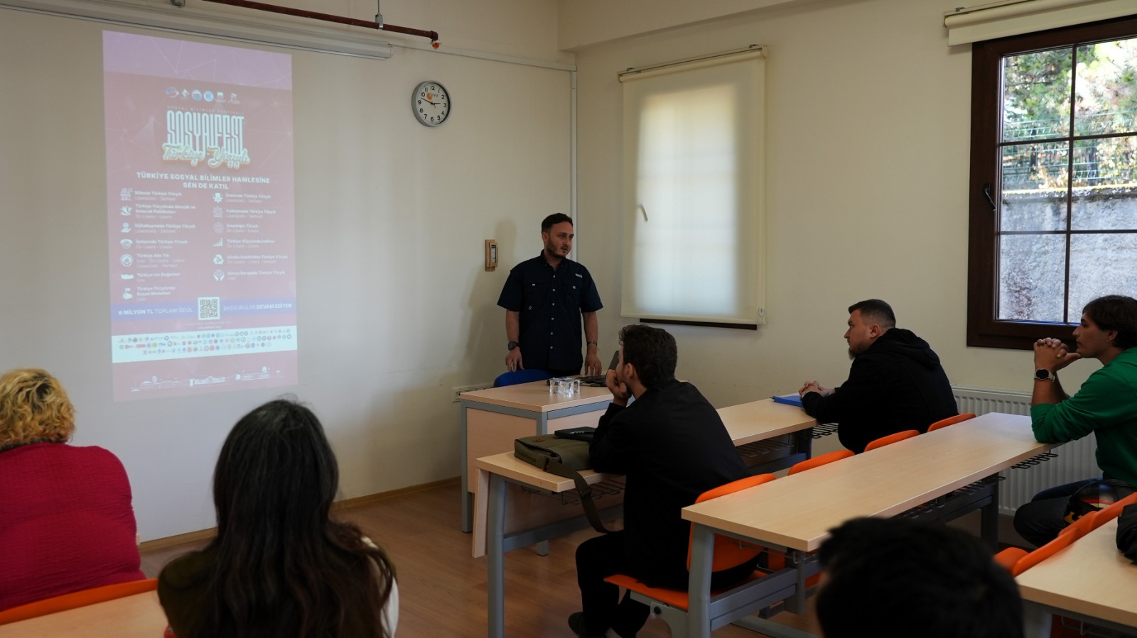 Üniversitemiz Bilimsel Yarışmalar Koordinatörlüğü akademik personeli Öğr. Gör. Hamza YETİK, 2-3 Mart 2024 tarihinde Üniversitemiz tarafından gerçekleştiren Tükiye’nin ilk ulusal ve uluslararası Sosyal Bilimler Festivali olan Sosyalfest 2024 ile Sağlıkfest 2024 ve Sosyalfest 2025 hakkında bilgiler verdi. Bu bağlamda Sosyalfest 2025’e başvuru noktasında fikri olan öğrencilerimiz için bunu projeye dönüştürmeye yardımcı olacaklarını kendilerini ofislerine beklediklerini ifade etti.