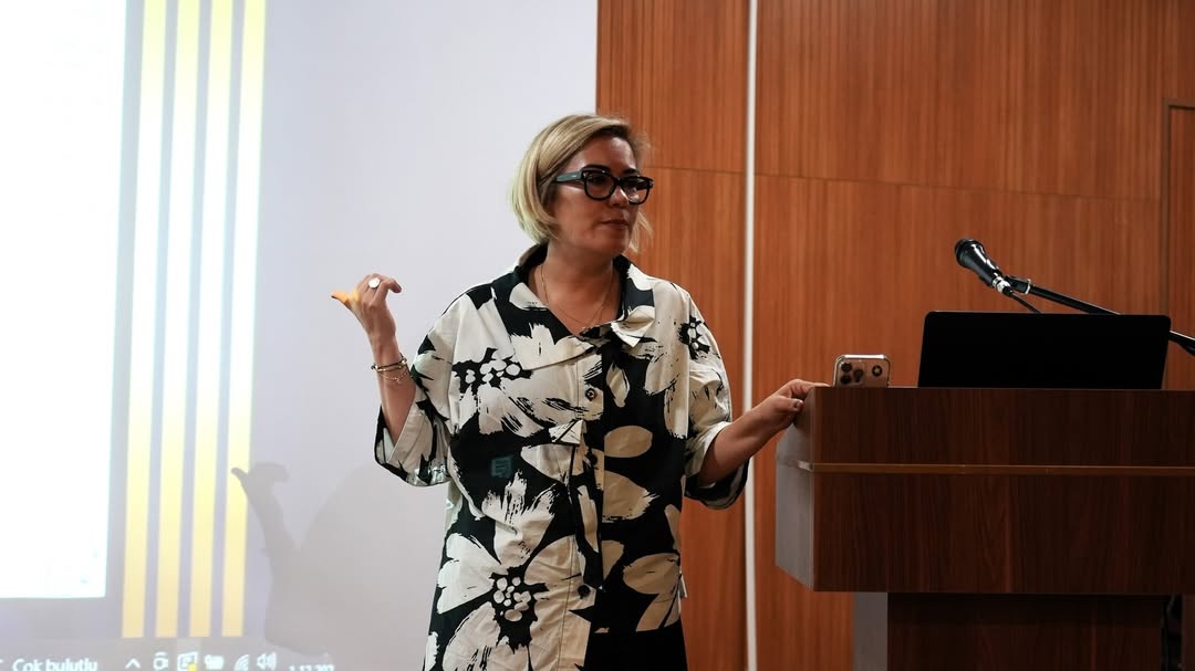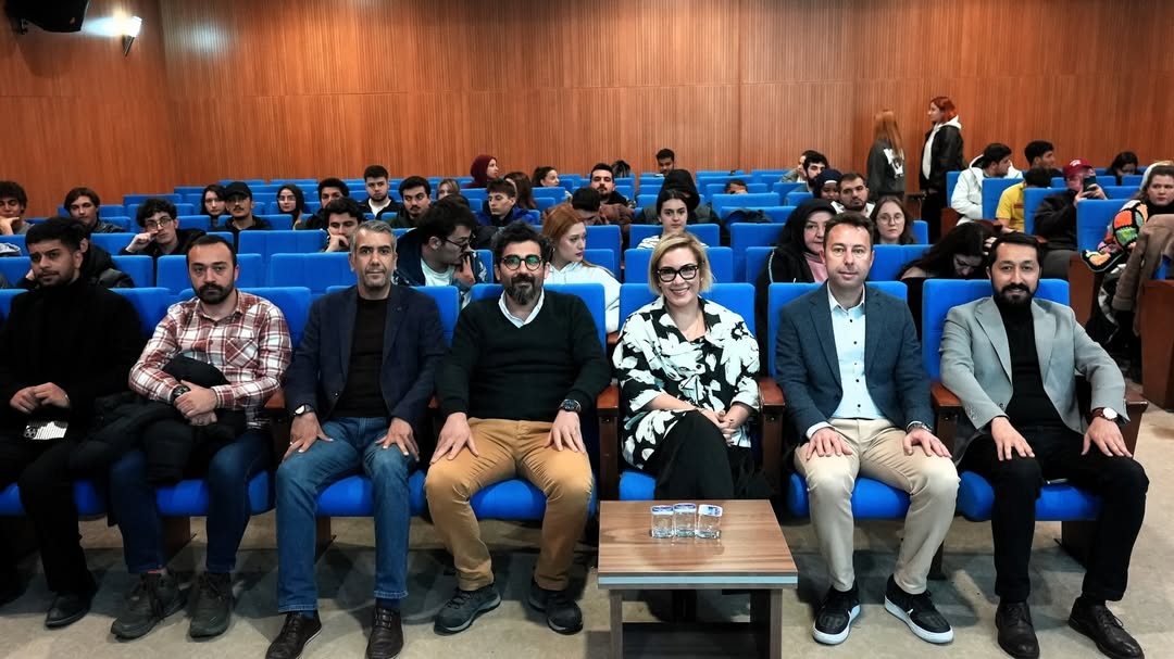 “Sinemada Yapım” adlı söyleşide Öztürk, mesleki bilgi ve deneyimlerini öğrencilerimizle paylaşarak ufuk açıcı bilgiler aktardı.